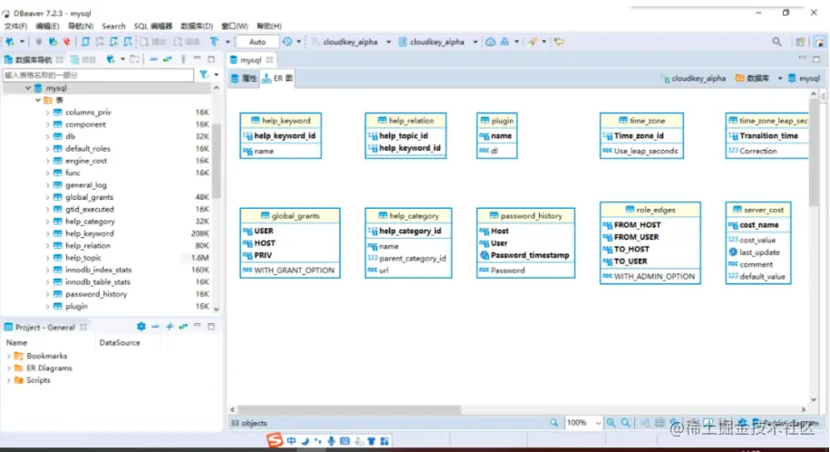 DBeaver支持导出ER图。通常我们开发一个新系统,经常会对数据库修修改改,迭代开发过程中也会有一些调整,导致数据库表结构、字段可能和最初的设计不一样,ER图自然也处在不断更新变化中,而DBeaver支持导出ER图,那不管数据库如何变化,我们只需要一键导出就能生成ER图,生成设计文档,是不是很方便?