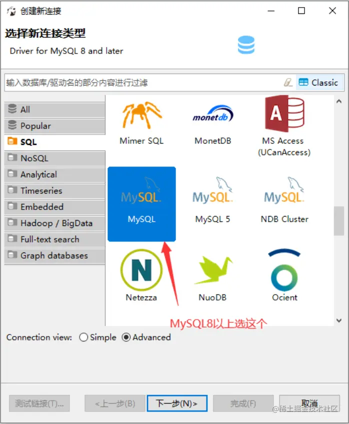 连接MySQL的过程和普通的数据库工具,输入ip、数据库名、用户名密码、测试,完成。