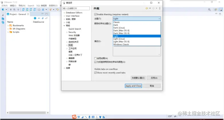 目前DBeaver支持的主题类型不多,但是程序员非常喜欢的暗黑主题已经有了,界面的风格和Jetbrain的开发工具十分相似,作为开发者,我是很有亲切感的。