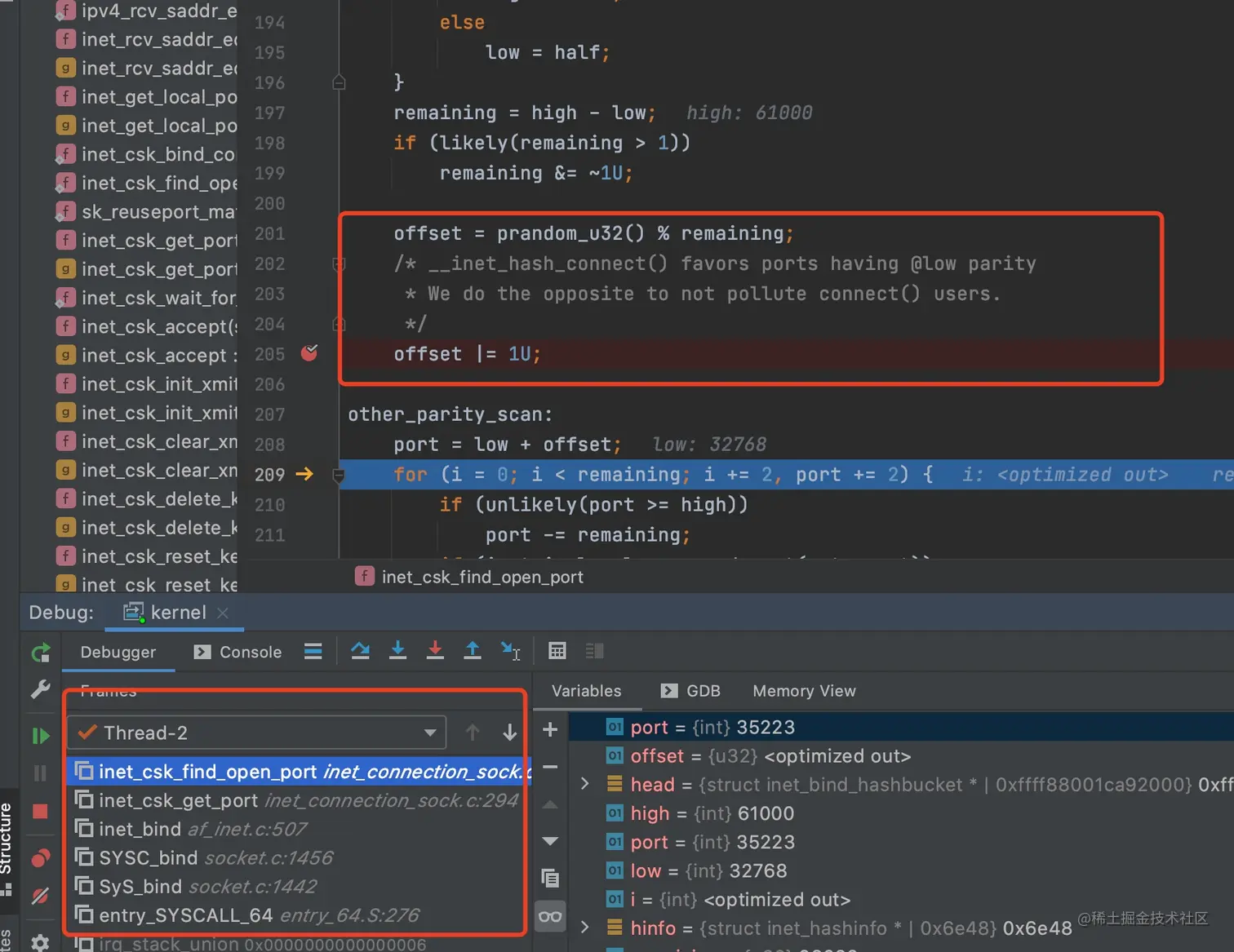 早期的 Linux 内核版本上,connect 非偶数端口也是可以复现的,在新的 4.2 内核版本中引入了一个特性(部分 Linux 发行版本有没有 backport 这个 feature) git.kernel.org/pub/scm/lin… ,如下图所示。