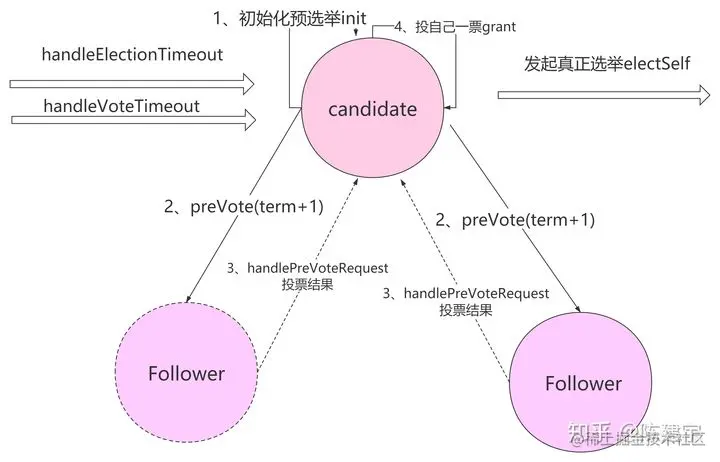一般来说,raft的选举仅且只有一轮投票选出集群leader,但会存在缺陷,就是网络分区后,少数派节点虽然都不会得到足够的票数成为分区Leader,但任选编号term却会不断增加,在网络分区恢复,少数派节点会因为term较大,而迫使多数派Leader下线,我们叫他做捣蛋鬼。为了避免捣蛋鬼谋权篡位,我们引入Pre-Vote,只有得到绝大多数选票,才有被提拔为候选人的资格