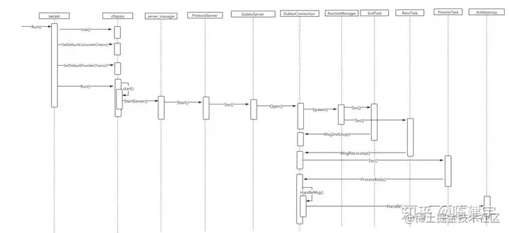 启动 mesher,mesher会根据配置信息启动两个服务,分别监听在本地回环和本地 ip 上。第二步,mesher(127.0.0.1:30101)接收到请求后,使用 LocalRequestHandler 处理请求,首先准备 consumer 调用链,获取并解析 client 调用的服务名和端口,创建 Invocation,之后通过 consumer 调用链进行处理,最后建立一个 client 对外部的目的服务发起调用;监听在 127.0.0.1:30101 的 mesher 作为 consumer,使用处理请求,consumerChain 调用链默认包含如下处理器(handler):