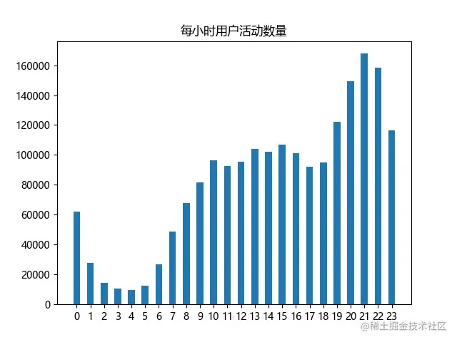plt.title(label="每小时用户活动数量")