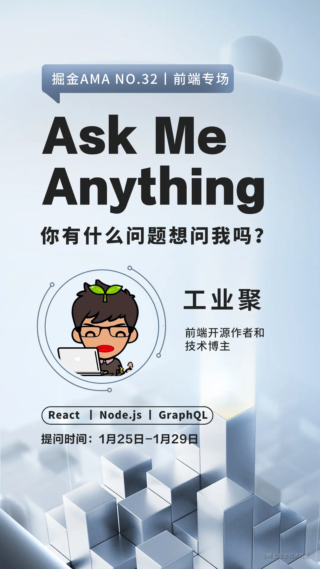 第三十二期 AMA 我们请来了3位前端的技术大佬,分别是开课吧首席Web顾问“winter”,前端开源作者和技术博主“工业聚”、花果山团队负责人 “大圣”。希望通过专场活动,集中帮助大家解决「技术相关」「个人成长」等问题。