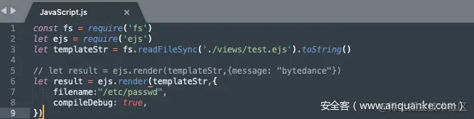 从上面的分析可以看到,ejs的渲染,是通过 “动态生成函数代码 -> 生成匿名函数 -> 调用匿名函数” 的方式去实现的(实际上Nunjucks, pug等许多引擎都是这么实现的),而这种方式是相当危险的,一旦动态生成的函数代码中存在用户可控的部分,恶意用户就可以在匿名函数中插入恶意代码并且会被渲染引擎所执行,最终导致远程代码执行漏洞。之前GYCTF2020 Ez_Express的题就是利用了ejs的这种特性。