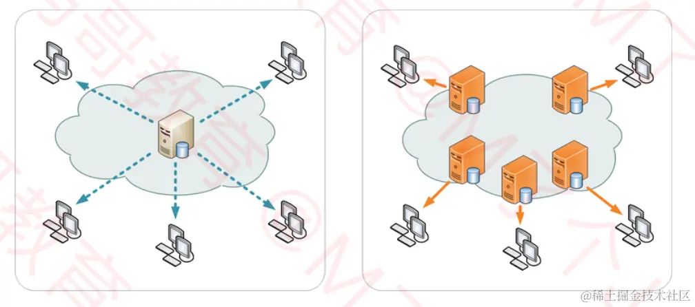 - CDN运营商在全国、乃至全球的各个大枢纽城市都建立了机房,部署了大量拥有高存储带宽的节点,构建了一个跨运营商、跨地域的专用网络,* * 内容所有者向CDN运营商支付费用,CDN将其内容交付给最终用户