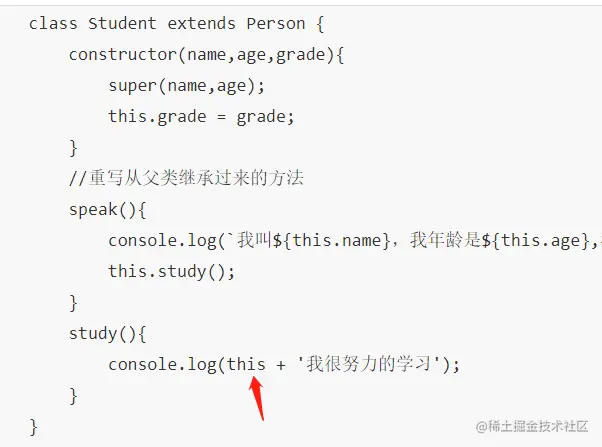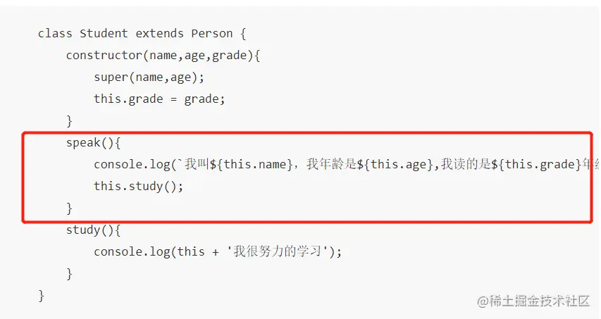 答: constructor(name,age,grade){ super(name,age); // 必须调用super, class规定,并且放在自定义属性语句之前 this.grade = grade; }