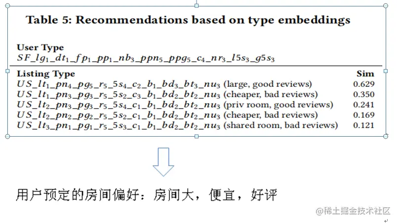 搜索中的房源根据embedding的相似性进行了重新排序,并且最终被预订房源的排序是按照每次预定前的点击的平均值来计算,追溯到预定前的 17 次点击