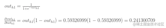 经过sigmoid函数后,h1节点的输出值为: