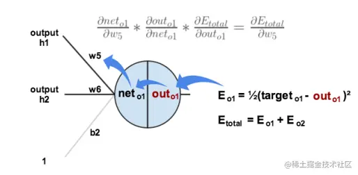 首先我们来求总误差对w5的偏导数,根据链式法则,我们有: