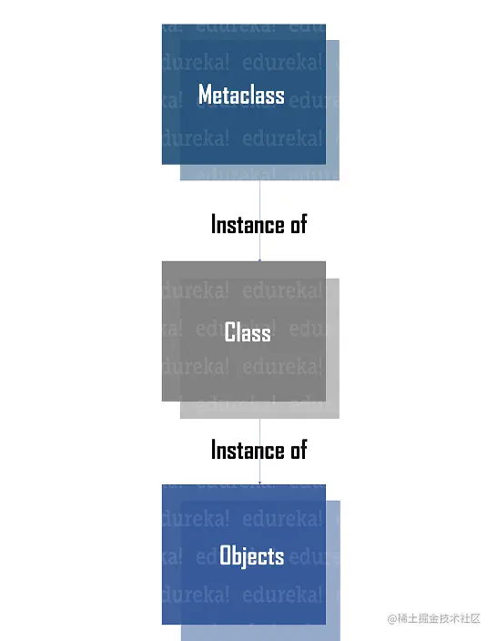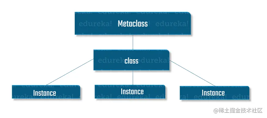 类为对象定义规则。同样,元类负责为类分配行为。我们已经知道,类是对象,就像每个对象都有一个实例一样,类是元类的实例。