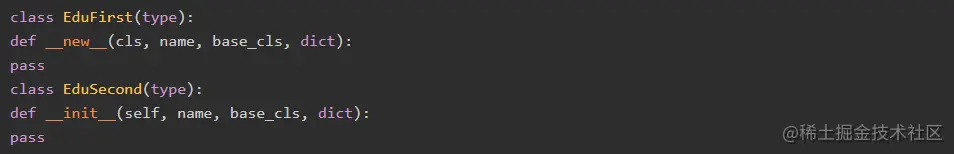 在创建新类时,Python查找**__metaclass__** 关键字。以防万一,如果不存在。它遵循类型类层次结构。