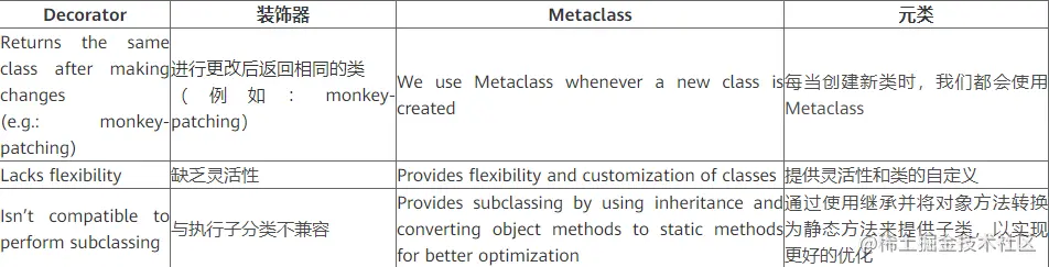 元类允许自定义类。还有多种其他有效且简单得多的方法可以通过这些方法实现相同的输出。这样的例子之一就是使用装饰器。