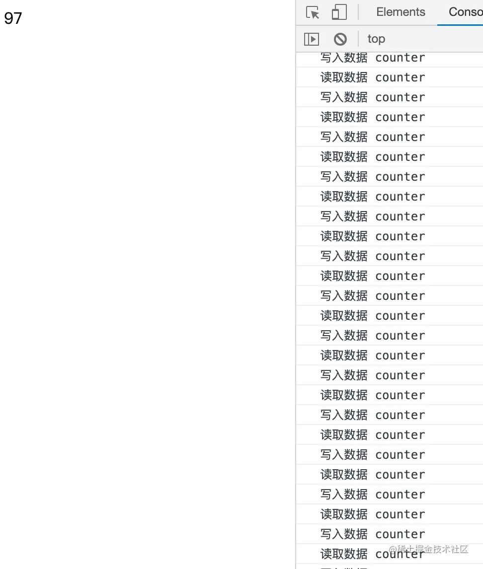 拦截到数据读取操作之后,利用数据的变化,来实现页面的更新。接下来就写一个简单的例子:定义一个counter,counter1秒钟增加一次,并且把增加后的值同时显示在页面上。