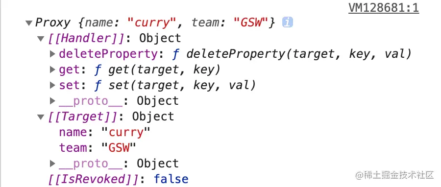proxyObj.team = 'GSW' //控制台打印:写入数据 team