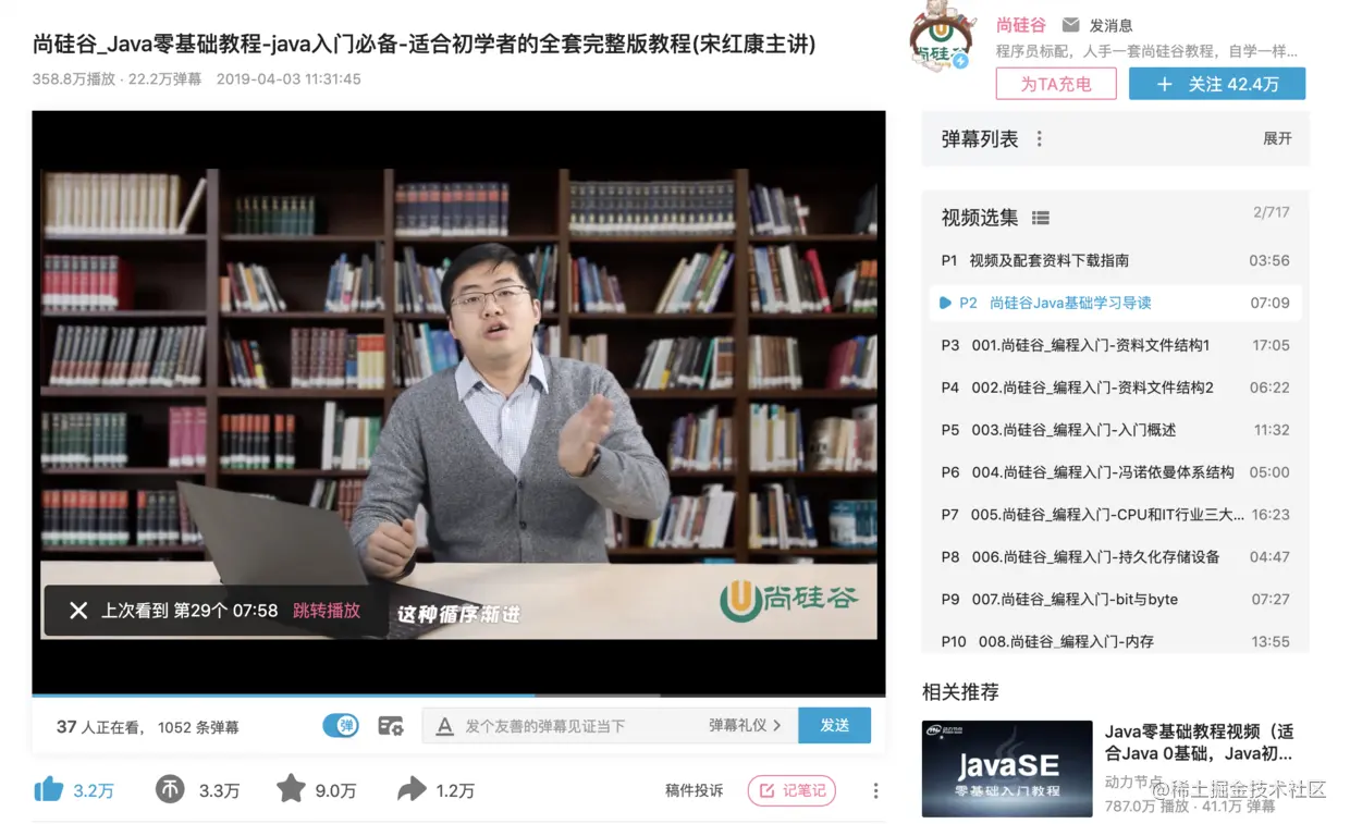 学习 Java 的话,推荐尚硅谷的一个课程,717 小节,我天呐,必须 2.0 倍速食用!
