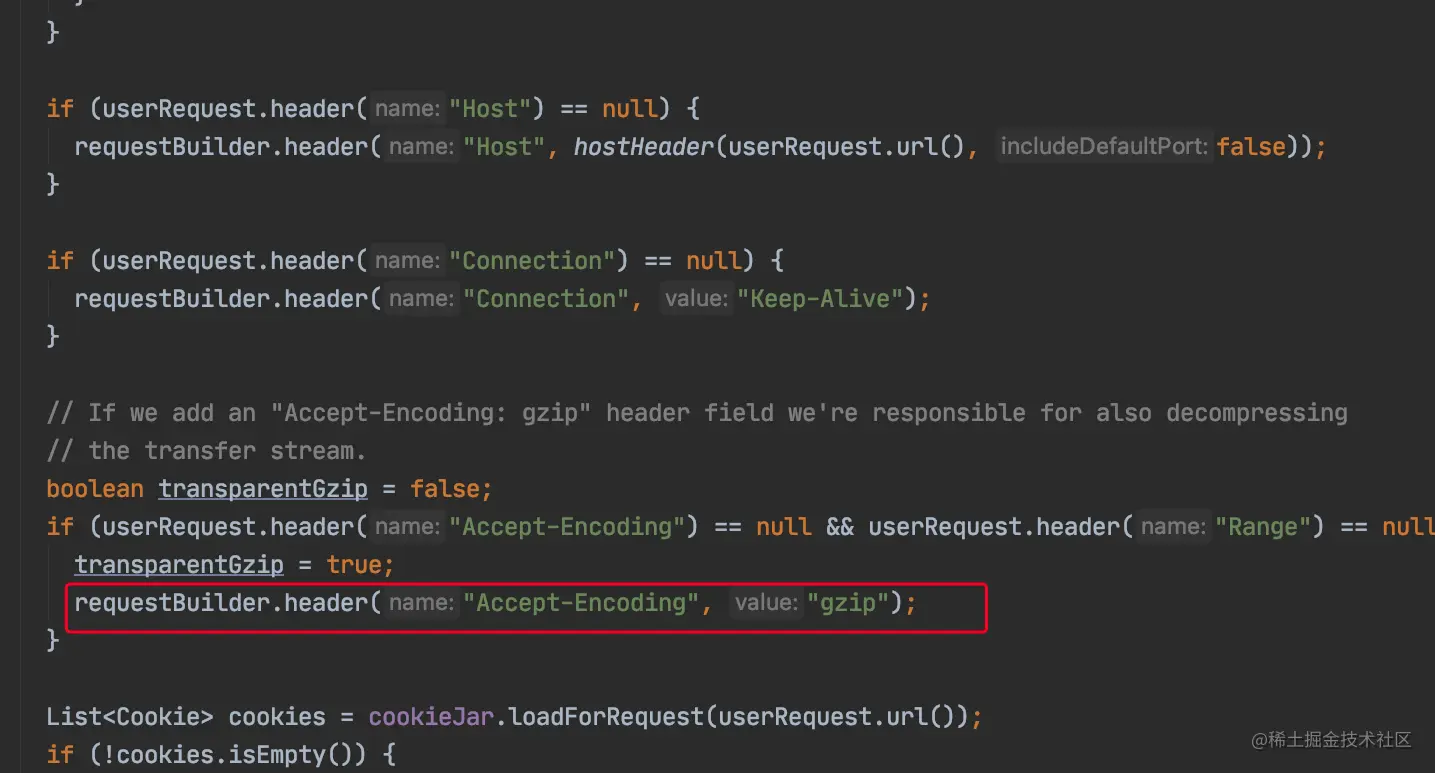 请求之前会添加很多header ,这里注意 他会自动的帮我们添加gzip这个属性