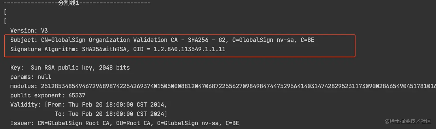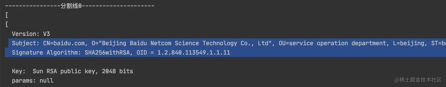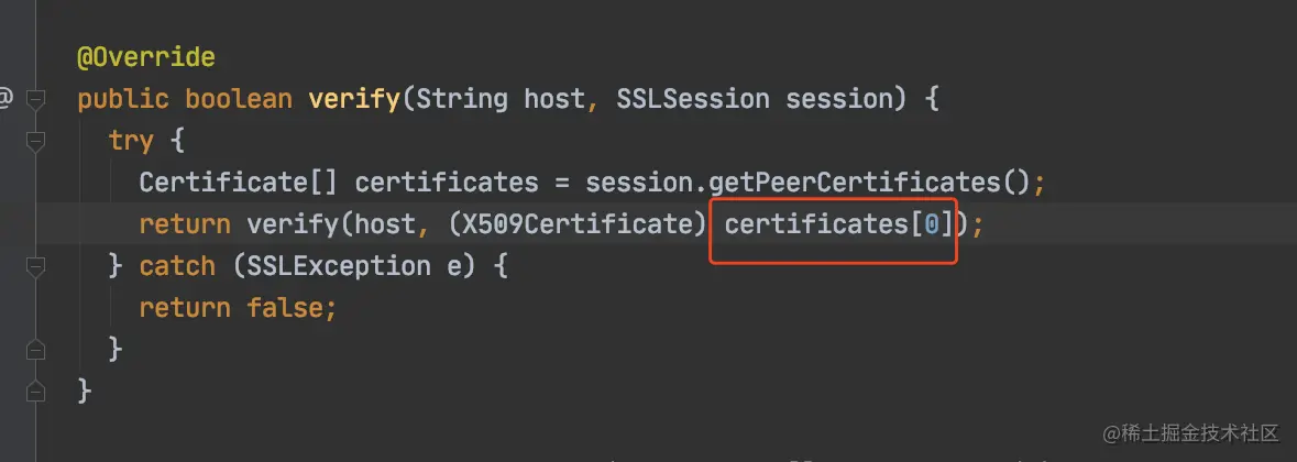 这里注意看 为啥这里是取一个数组的 头部位置?取第一个元素? 这里实际涉及到https的知识了,实际山 在tls连接建立的过程中, 服务端给客户端传递的证书 不仅包含 服务端自己的证书,还包含他签名机构的证书