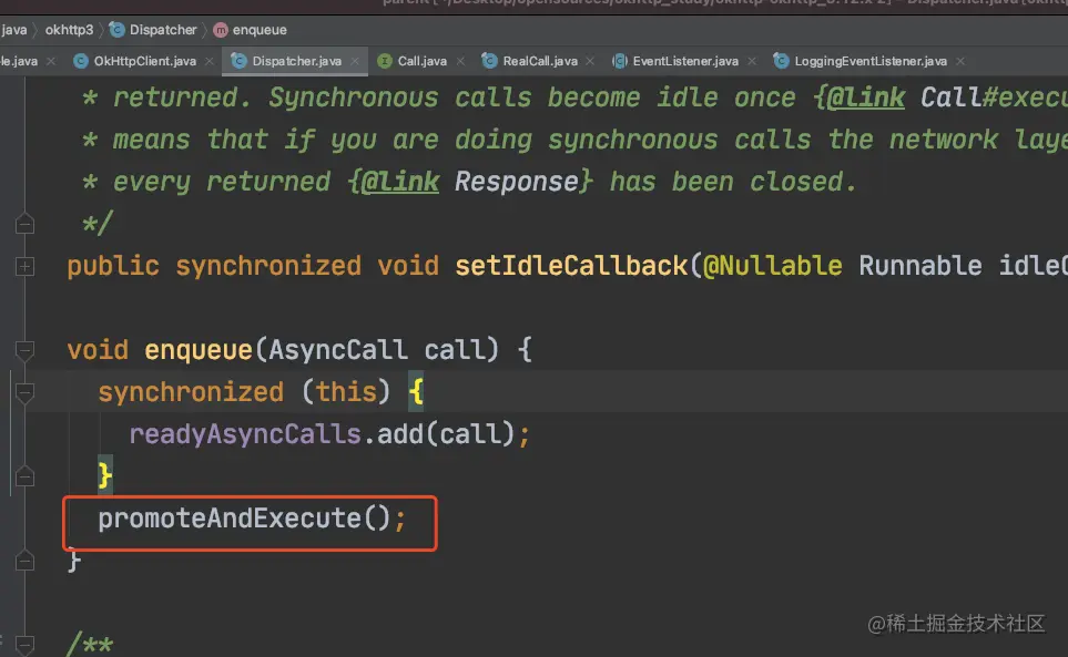 这里可以看出来 真正执行的是 AsyncCall的 execute方法