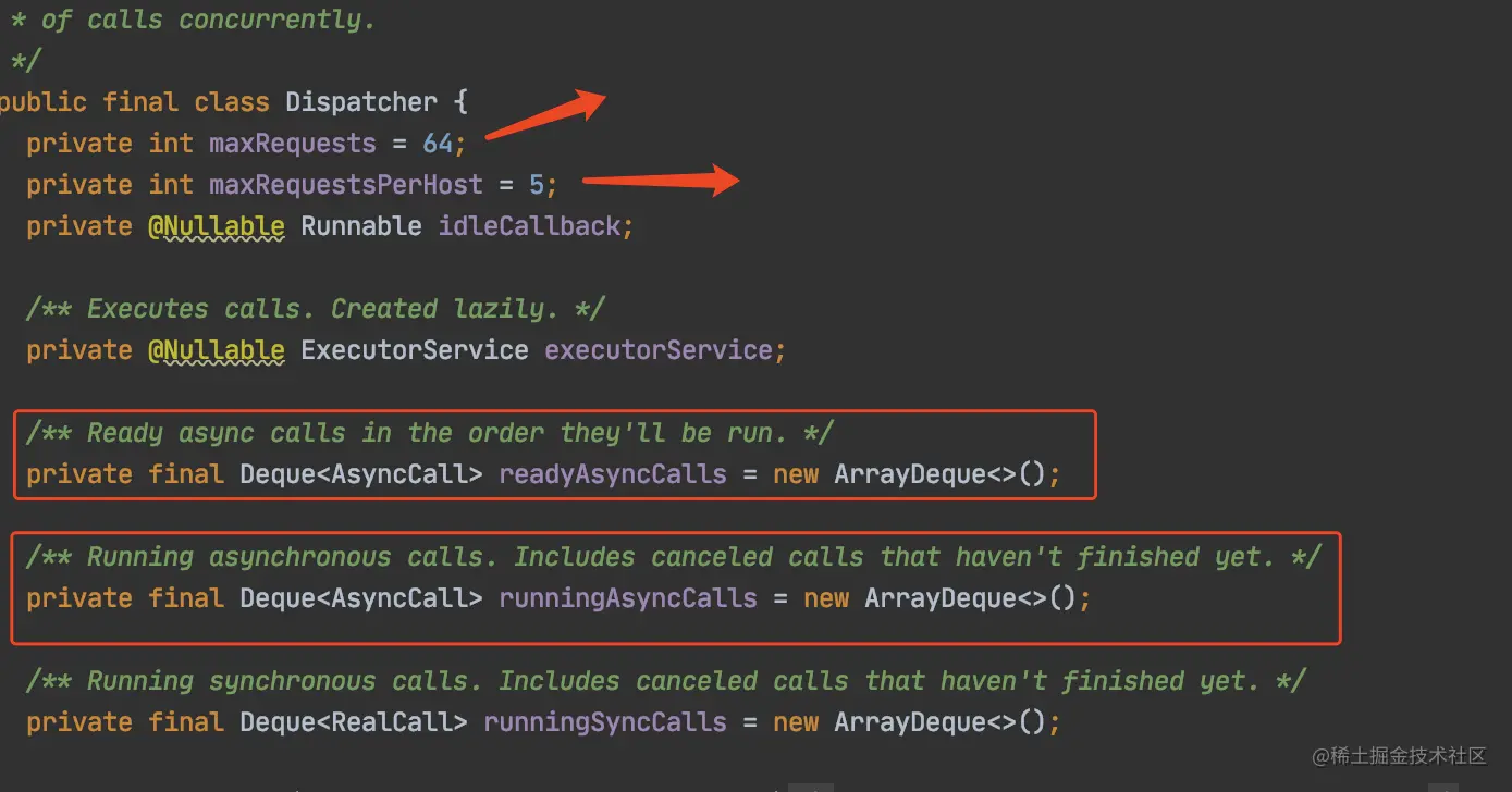 maxRequests:可以同时运行的最大请求数,也就是说 一个okhttp的client 可以同时发64个请求去