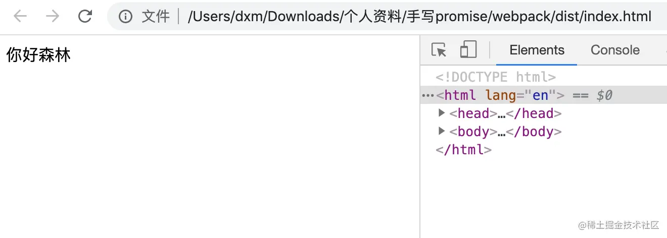 我们在dist目录下创建index.html文件,引入打包生成的bundle.js文件:
