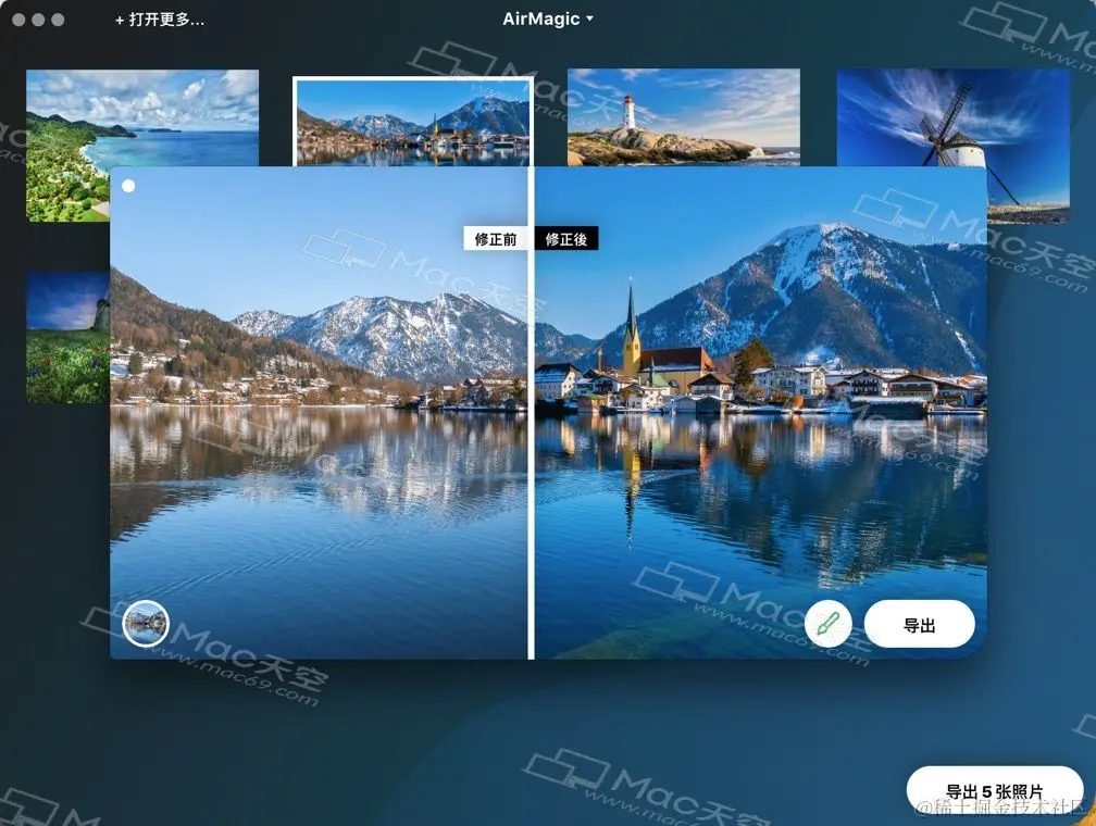 AirMagic Mac版是Mac平台上一款能够为您改善照片航拍照片的图像处理软件。AirMagic Mac特别版能够为你一次改善多张照片效果。AirMagic 特别版可以作为一款单独的应用程序使用,也可以作为Photoshop和Lightroom 插件使用,有需要的朋友快来看看吧!