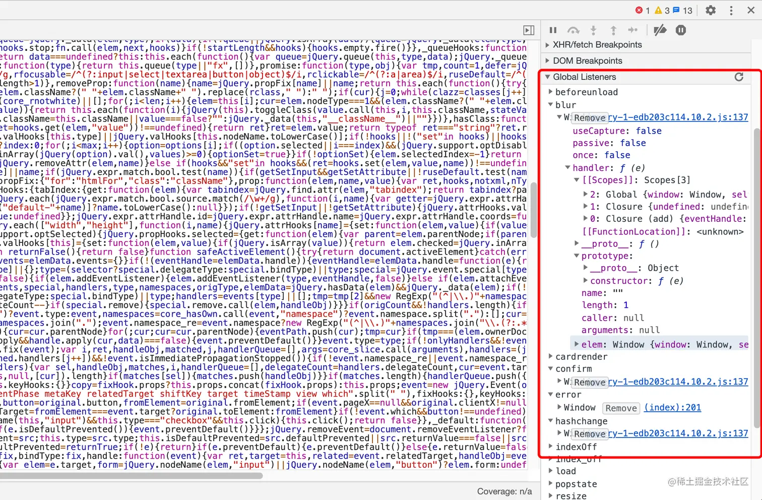 全局监听,在这里可以看到全局有哪些事件监听被注册绑定了什么函数,还可移除(Remove)对应的全局事件监听