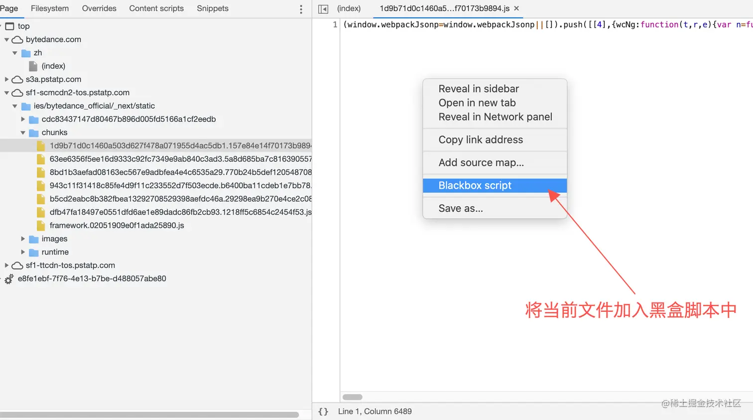 项目中例如引用了jquery.min.js之类的库文件,我们调试的时候并不需要关心,那么可以将此类脚本文件右键选择添加到“黑盒脚本”中,那么在debug单步调试时,就不会进入到此类库文件中,减少了调试步骤。