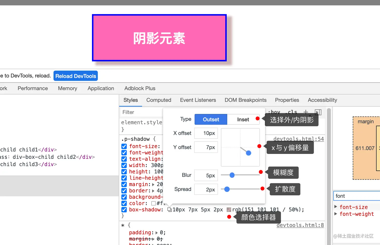 阴影选择器用于box-shadow属性,可以直接通过选择器可视化调整