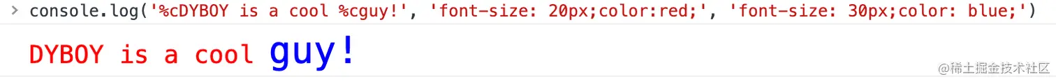 使用%c占位符,可以像写行内样式一样,自定义输出内容的样式