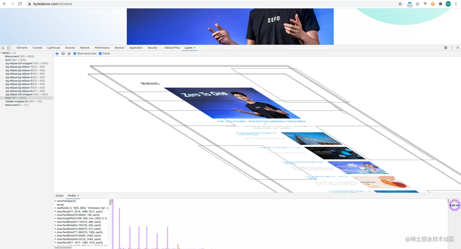 层,当一个页面足够复杂的时候,在css加持下,可能会出现一些渲染性能问题,这时候可以通过Layers工具显式地查看DOM层关系。