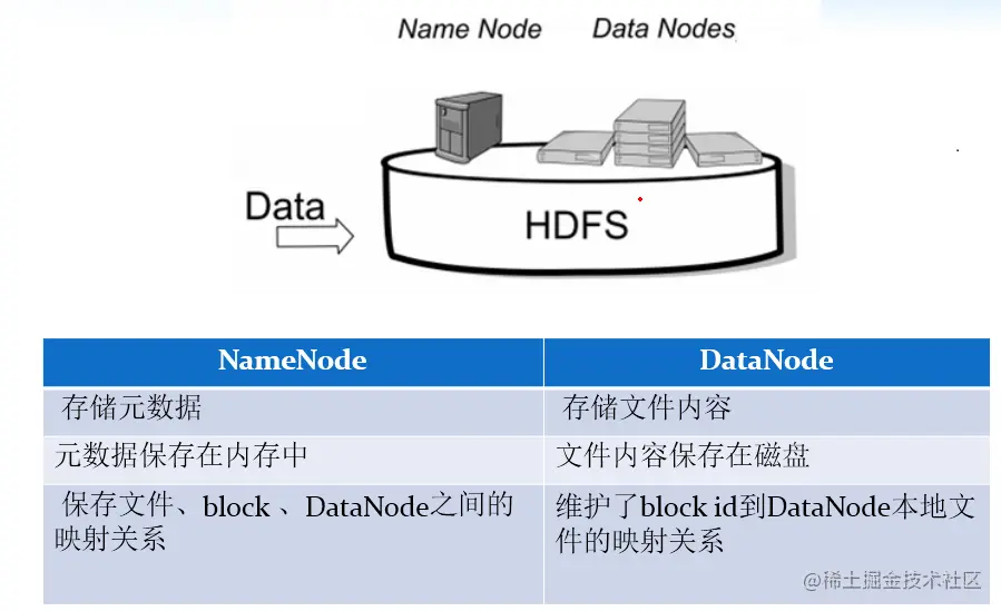 NameNode 负责管理整个文件系统的元数据,以及每一个路径(文件)所对应的数据块信息。