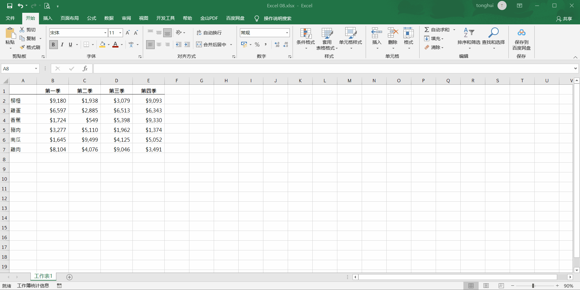 - 方法一:在填写表格数据时,可以在空白单元格中右键后点击右键菜单中的从下拉列表中选择这个功能快速完成表格数据的填写,也可以使用快捷键ALT键+数字键盘的向下键来快速的调出下拉列表