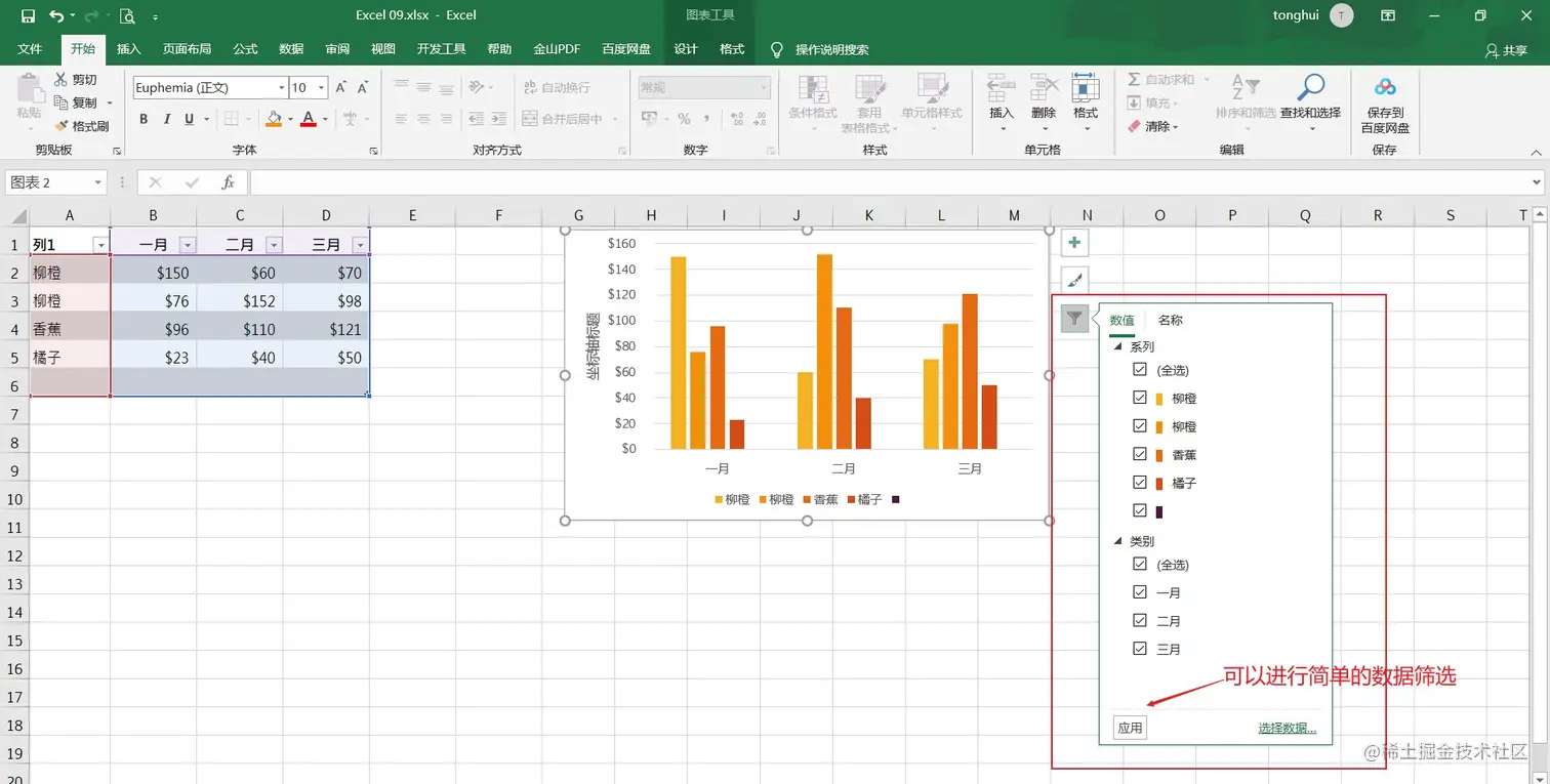 怎么根据图表数据进行简单的数据筛选?