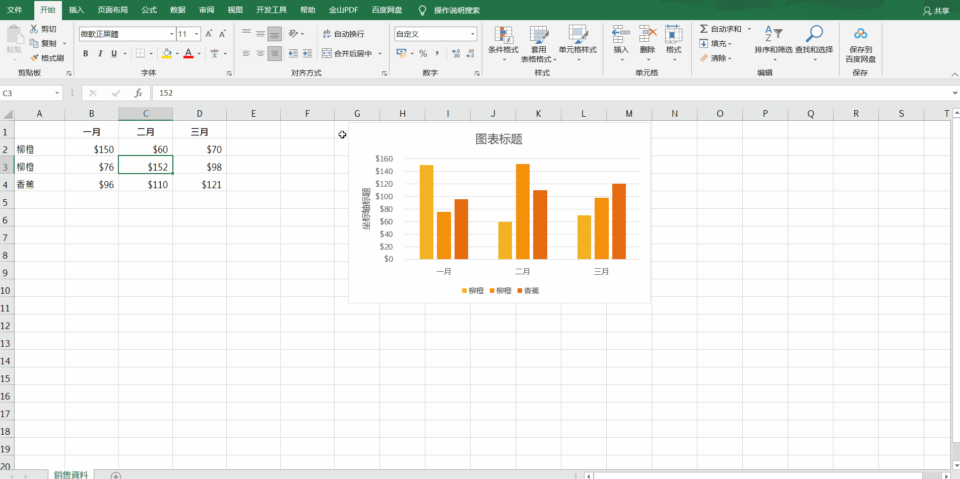 - 方法:可以先将区域范围转换为表格再由此插入图表即可做到图表数据实时更新,表现为修改表格内的数据后,图表的资料数据也会相应改变