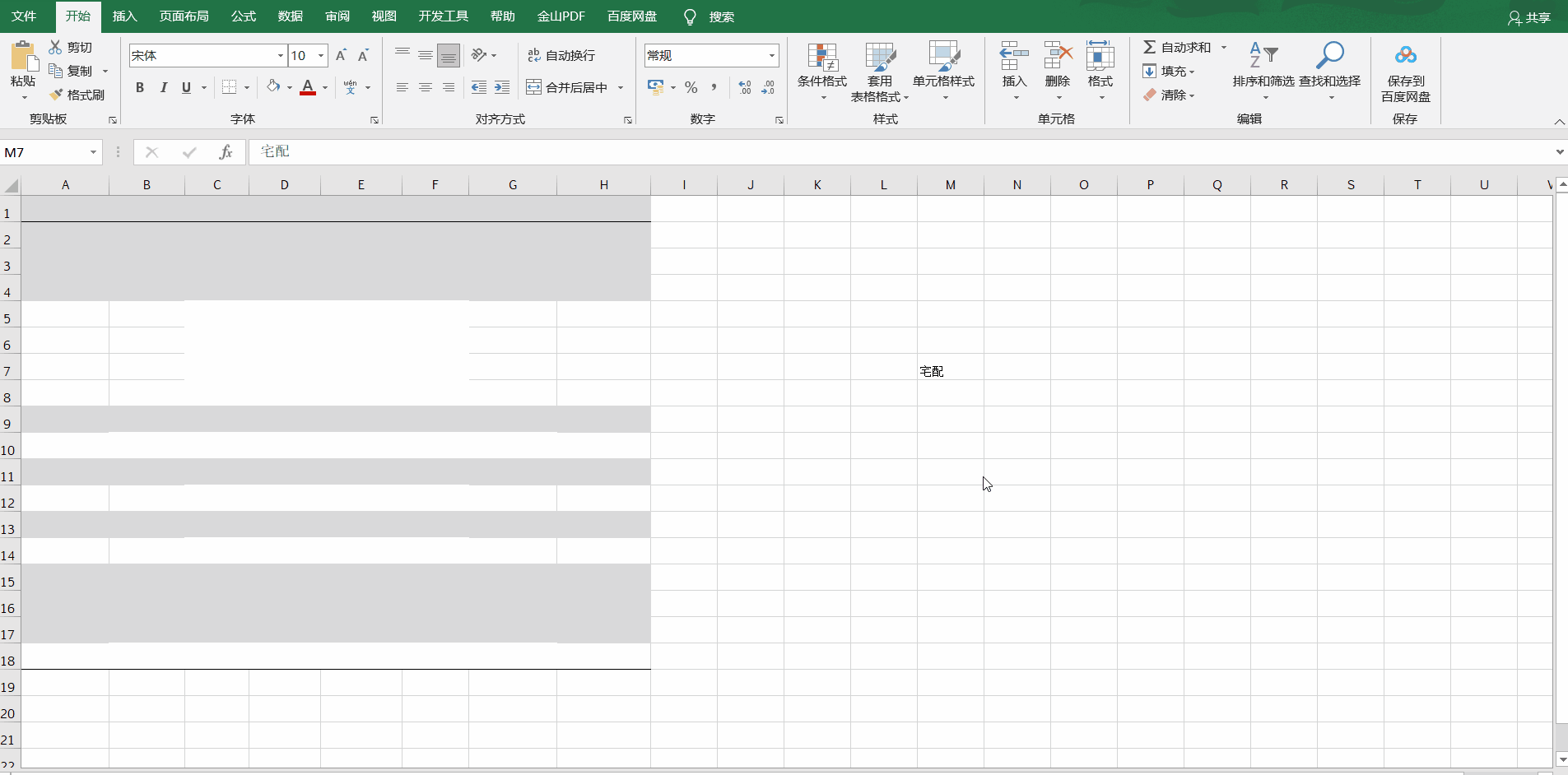 - 方法一:在选定范围后,点击开始面板中的条件格式,在点击突出显示单元格规则。在这里我们将在商店标题列中符合宅配内容用浅红色突出显示为例。