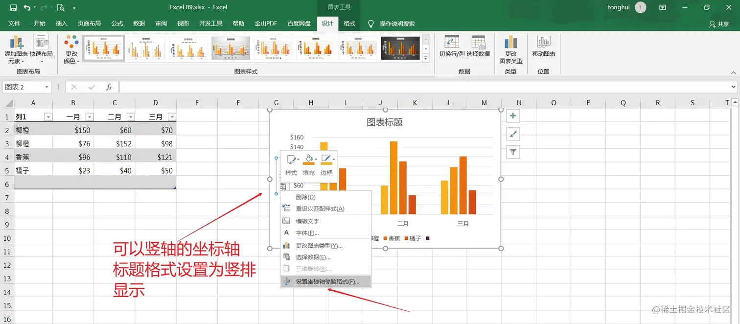 - 方法一:右键点击坐标轴标题,调出菜单后点击设置坐标轴标题格式