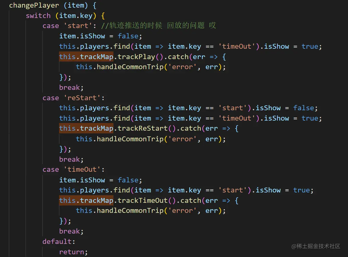 此处的trackMap上的trackPlay、trackReStart都是工厂类上抛出的方法