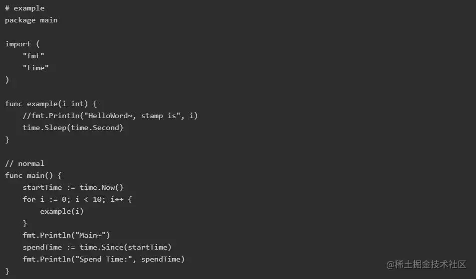 首先我们先看看不用goroutine的代码,示例如下
