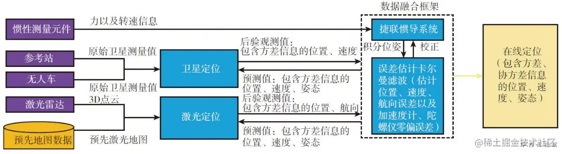 来自百度公司的自动驾驶团队采用的定位方案框图如图4所示。这是目前比较常见且有效的定位算法架构。定位算法的研究难点在于一些微小的处理与改变可能引起较大的精度差距。所以,不断有研究人员在定位算法上深耕突破。