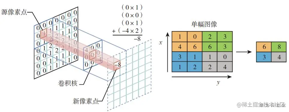 Fig.6 Schematic diagram of convolution (left) and pooling (right) operations