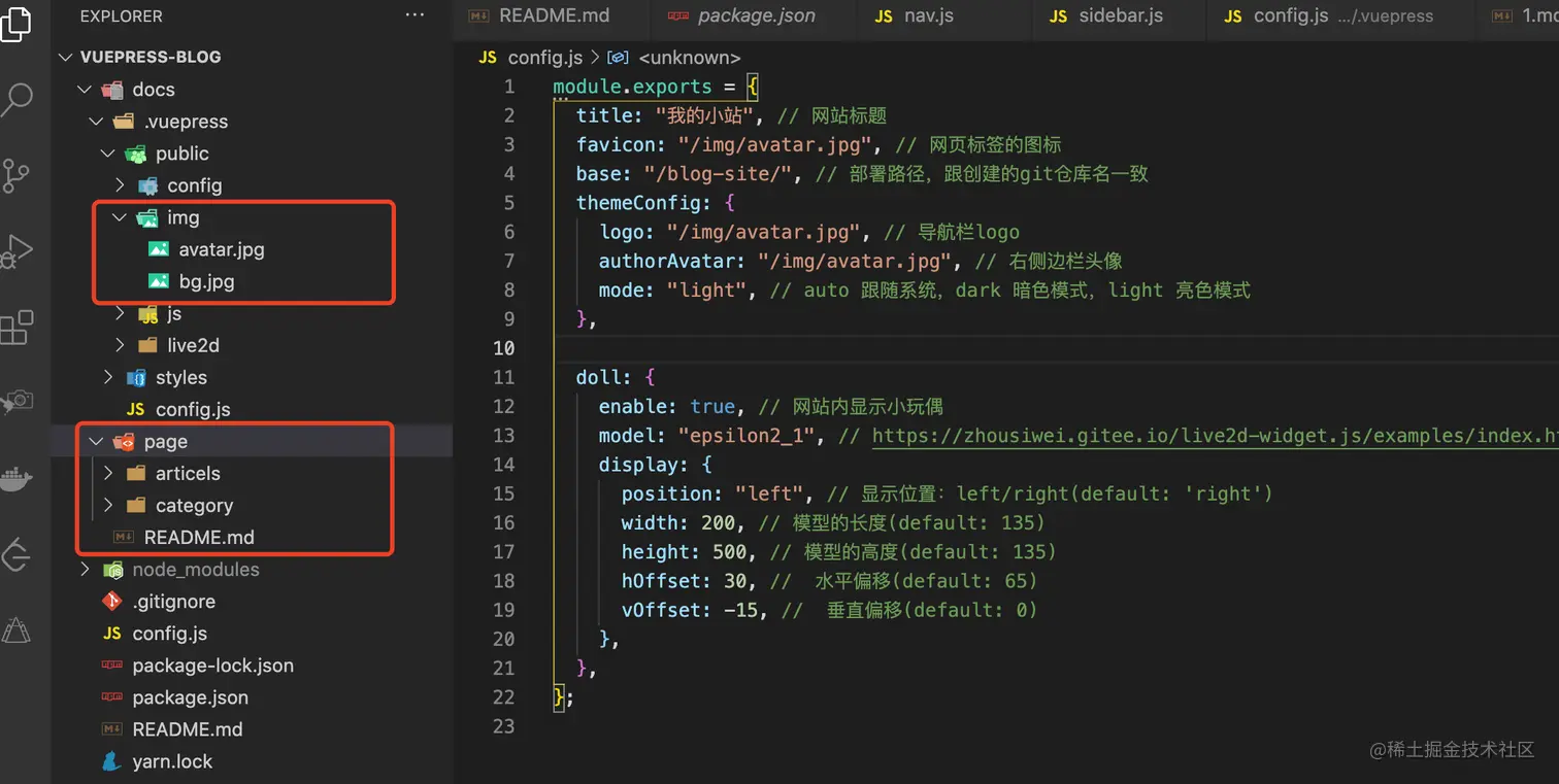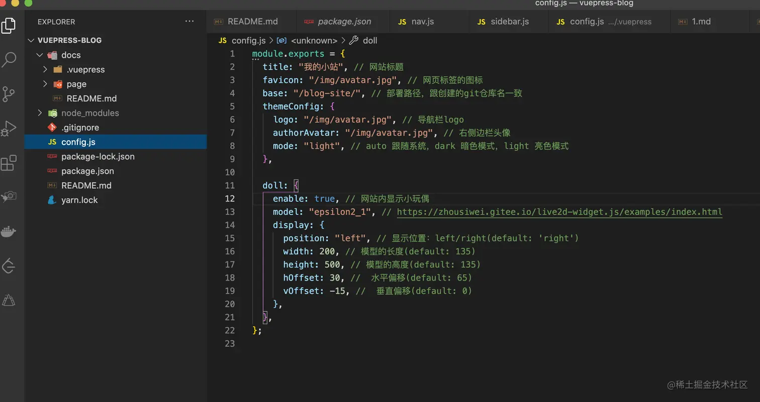 config.js文件可以对博客进行个性化配置 -