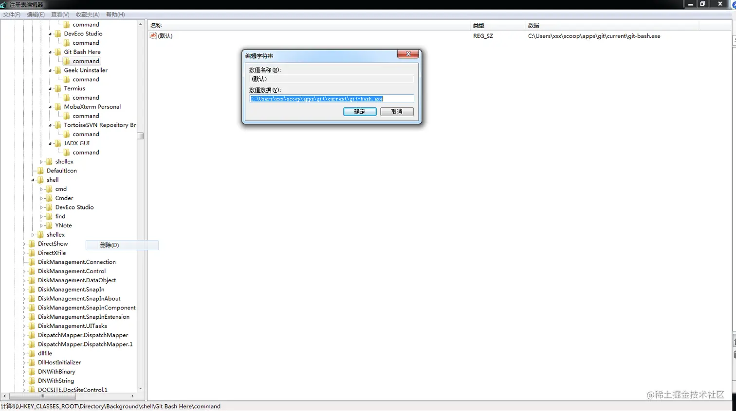 - 通过scoop命令安装git、svn等工具会出现丢失右键快捷选项问题