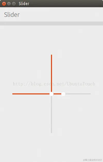 这里创建了连个Slider,一个是是水平的(默认情况下的),另外一个是垂直的(旋转90度的)。显示的结果如下: