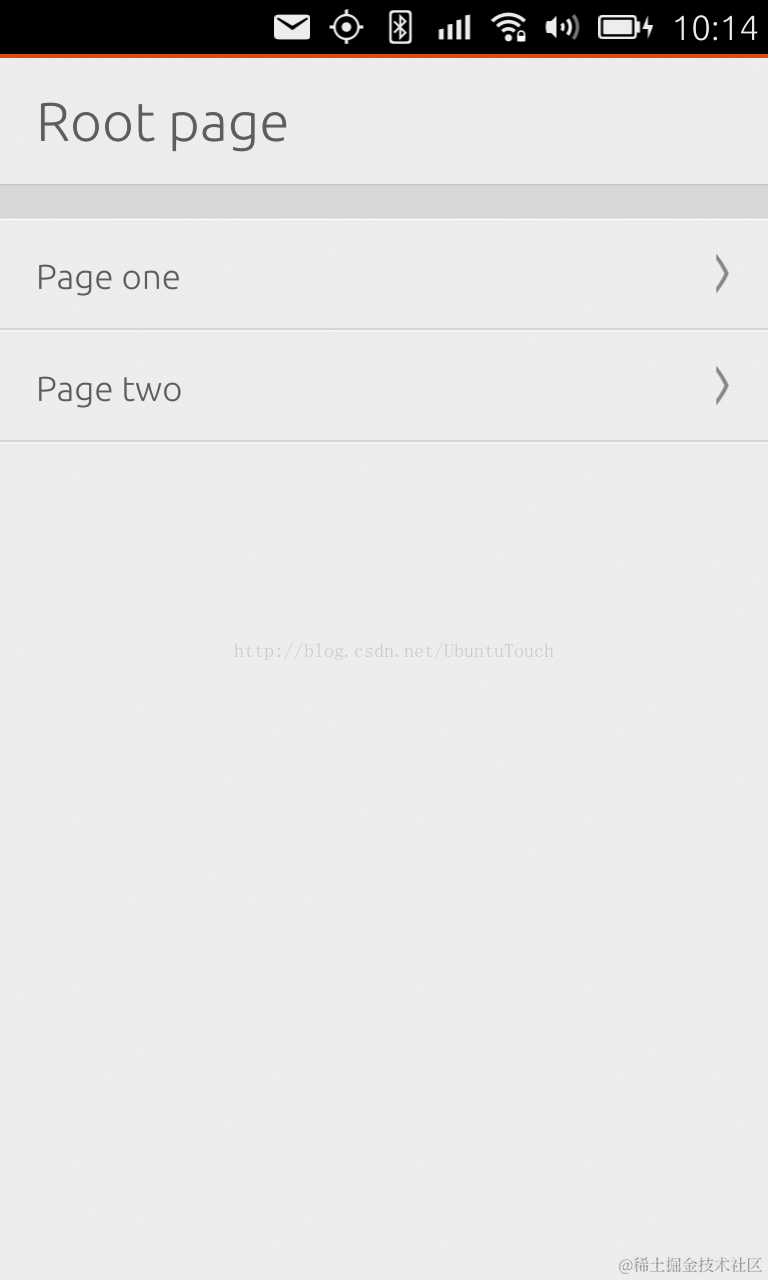 这里我们在应用启动时创建一个PageStack,并同时把“page0”压入栈中。使它成为第一个页面。在“page0”中,我们有有两个列表项,分别可以进入到下一个页面中。