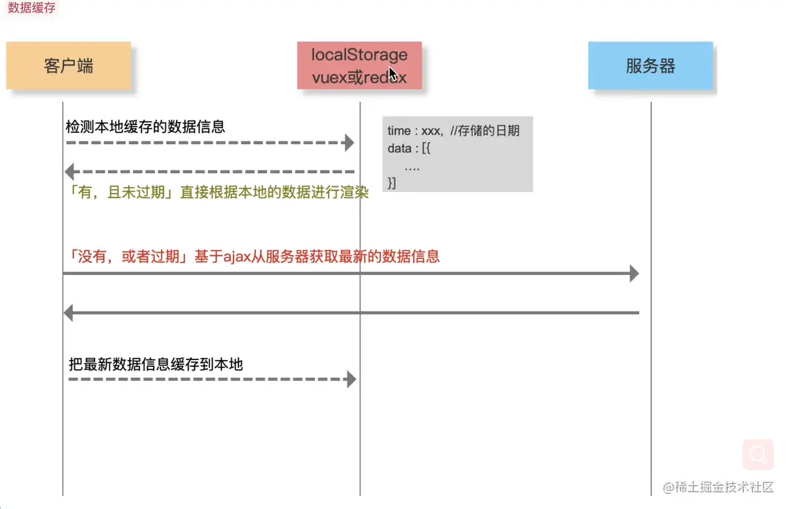 vuex 和redux 相当于全局变量 存在页面的栈内存中,强缓存和协商缓存前端都不需要做,服务端做。