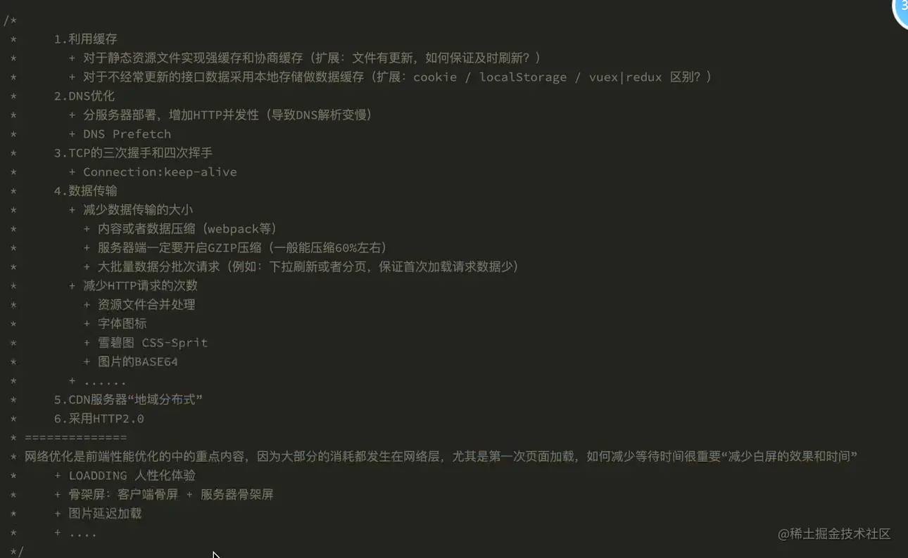产品性能优化方案: 1.http网络层性能优化 2.代码编译层性能优化 webpack, 3. 代码运行层性能优化 4.安全优化 xss+csrf 5.数据埋点及性能监控,