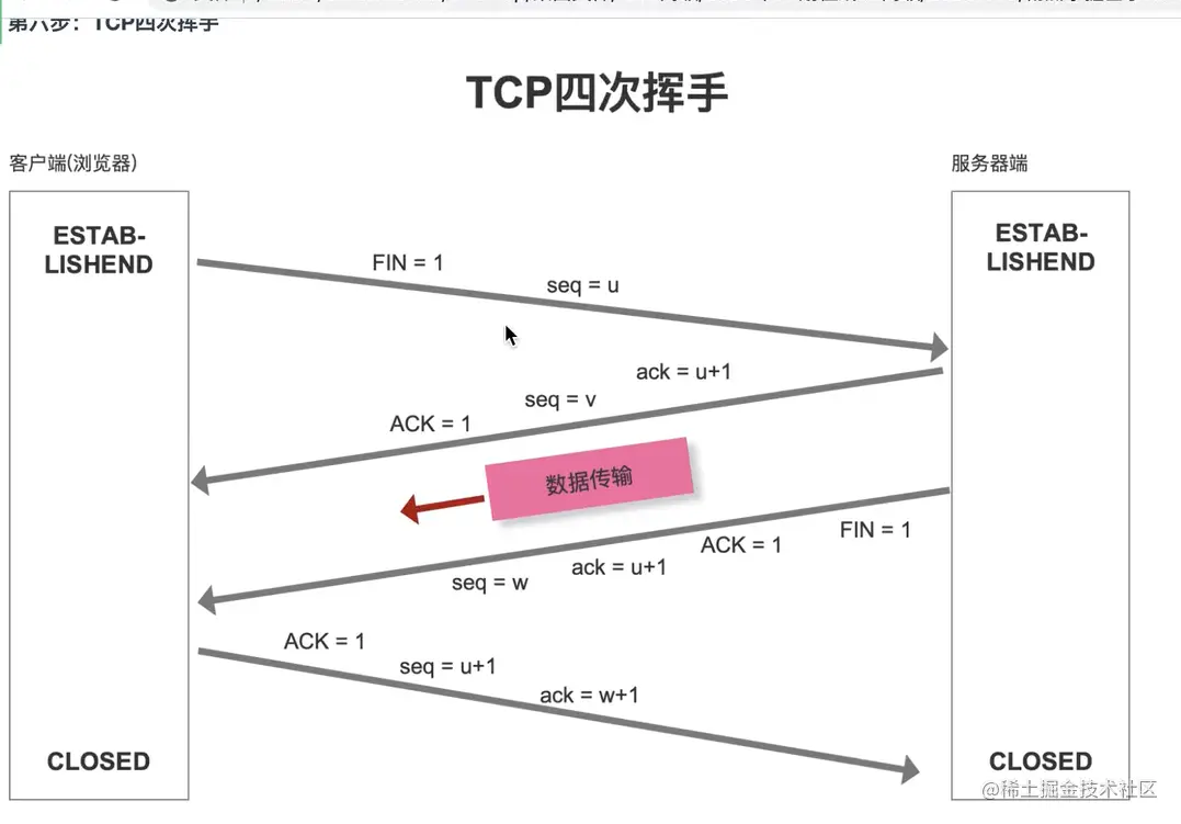 2. 但关闭链接的时候,当服务器接收到FIN报文时,很有可能并不会立即关闭链接,所有只能先回复一个ACK报文,所以只能先回复一个ACK报文,告诉客户端,你发送的FIN报文我接受到了,只有等服务器端所有报文发送完了,我才能发送FIN 报文,因此不能一起发送,故需要四次挥手。