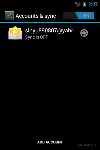 恩?怎么只有一条空数据啊。貌似模拟器上默认就是这样的,如果你用的是手机的话,这里应该就可以查到真正的数据了。不过没关系,我们可以在设置里面手动添加一个邮箱账户,如下图所示: