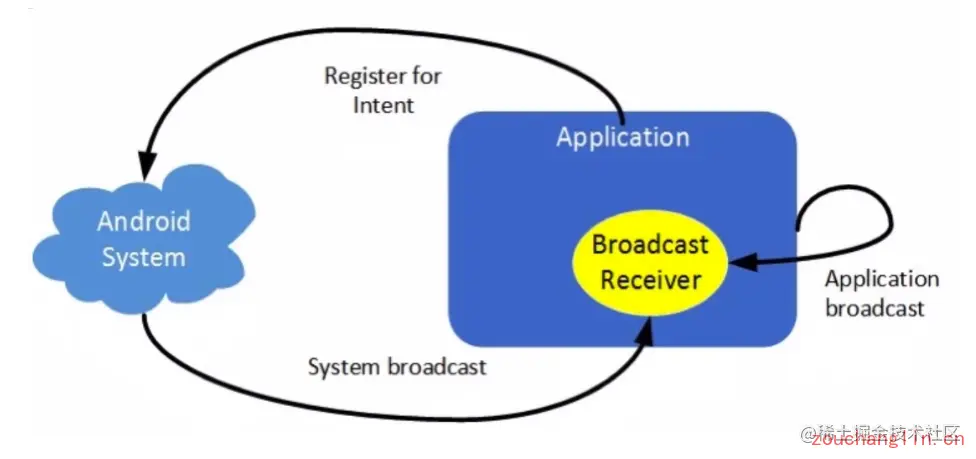 应用程序可以通过两种方式接收广播:通过清单文件声明的广播接收者和上下文注册的广播接收者。